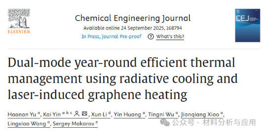 中南大学《CEJ》:使用辐射冷却和激光诱导石墨烯加热的双模式全年高效热管理