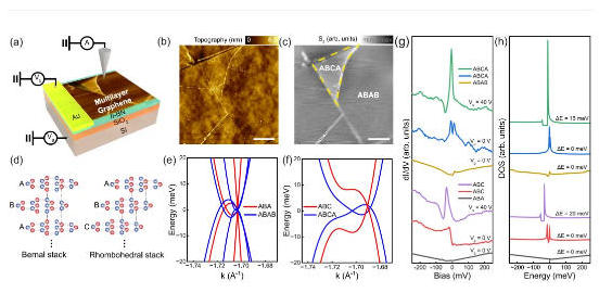 图1 三层和四层菱方石墨烯中的器件装置和平带