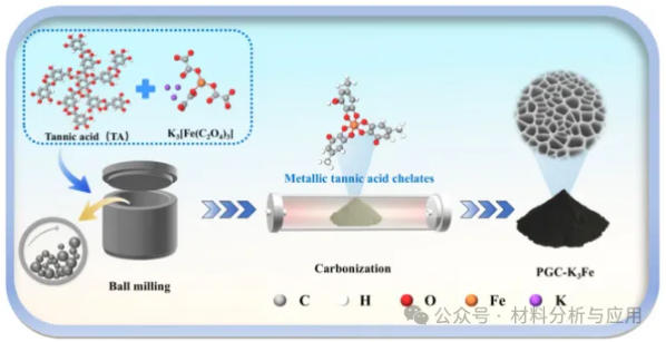 图1. Solvent-free mechanochemical synthesis pathway for PGC-K3Fe.