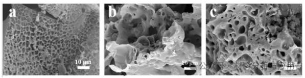 图2. SEM images of (a) PGC-K3Fe, (b) PGC-K2Fe, and (c) PGC-Fe.