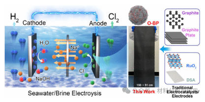 总体而言,研究表明,通过构建适宜的含氧碳位点,长期被忽视的碳基材料可作为与RuO?/DSA相当的高性能CER电催化剂。我们示范了一种简便的退火氧化的方法,可在商用炭黑和碳布上形成适宜的氧官能团。实验与理论结果均验证:在石墨平面边缘构建羰基、环状醚及羧基结构,可赋予氧化的碳材料卓越的氯气进化催化活性与稳定性。经活化的含适配氧基团的商用BP材料,能在极低氯气进化过电位下实现高电流密度,并保持近100%的法拉第效率与稳定性。相较于传统贵金属催化剂,本文展示的含氧碳电催化剂在实验室及模拟工业规模下均展现出更优异的氯气析出活性与稳定性,为大规模海水电解及脱盐盐水处理领域制造新一代阳极提供了极具前景的绿色生产解决方案。