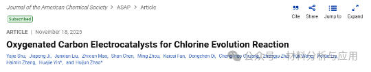 氯碱工艺在全球化工领域具有不可替代的作用,但其对RuO?(或IrO?)/TiO?基尺寸稳定阳极的高度依赖,阻碍了该工艺的可持续发展及新应用拓展。本文,中国科学院合肥物理研究所尹华杰 研究员、Huijun Zhao等在《 J. Am. Chem. Soc》期刊发表名为“Oxygenated Carbon Electrocatalysts for Chlorine Evolution Reaction”的论文,研究提出一种简便的氧活化方法,可在商用炭黑和碳布上生成适宜的氧官能团。实验与理论研究表明,在石墨平面边缘引入羰基、环状醚及羧基官能团后,商用碳材料展现出卓越的氯气析出反应活性(过电位:1 A cm–2时达204 mV)、选择性 (平均法拉第效率:99.6 ± 1.3%)及稳定性(在0.5 A cm–2下稳定运行100小时),其性能可媲美甚至超越基准RuO2及尺寸稳定阳极。