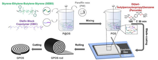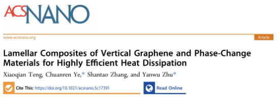 近日,中国科学技术大学 朱彦武教授 与 叶传仁特任副研究员 团队联合提出 “层状轧制组装” 设计策略,成功开发出垂直石墨烯薄膜(VAGF)与改性石蜡(POS)层状复合热界面材料(GPOS),实现了导热性能与界面适配性的协同突破。该复合材料采用创新结构设计:基质为经烯烃嵌段共聚物(OBC)与苯乙烯 - 乙烯 - 丁烯 - 苯乙烯(SEBS)交联改性的石蜡(POS),解决了传统石蜡易泄漏的问题,同时具备良好 deformability;增强相为垂直取向的石墨烯薄膜(VAGF),提供高效热传导通道。这种 “高导热骨架 - 高柔顺基质” 协同设计赋予材料卓越综合性能:热学性能方面,55℃(相变温度区间)时垂直热导率高达 789 W/(m?K),60 psi 压力下接触热阻低至 17 K?mm2/W,远超商用 TIMs;稳定性方面,经 300 次熔融 / 冷冻循环后泄漏量 < 0.3 wt%,3600 次热循环后仍保持稳定散热性能;实际应用中,在 30 W/cm2 热通量下,模拟芯片温度升高仅 30-44℃,显著低于商用碳纤维导热垫(73℃),散热效率提升 59.0%-130.8%。该材料制备工艺具备规模化潜力,通过调控轧制层数与组分比例可精准控制性能,为高功率电子设备热管理提供了全新解决方案。相关研究成果以 “Lamellar Composites of Vertical Graphene and Phase-Change Materials for Highly Efficient Heat Dissipation” 为题,发表于《ACS Nano》。
