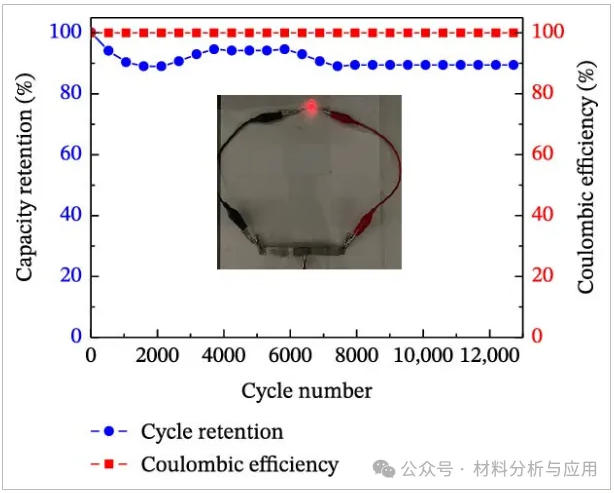 在传统合成中通常最为耗时的热烧结步骤,使用家用微波炉仅需1分钟即可完成。所得的三电极系统在1A/g电流密度下,阳极和阴极的比容量分别达到714.4 C/g和521.4 C/g。组装后的器件展现出0.36 C cm?2的面积容量,并在50 mA cm?2的电流密度下经过13,000次充放电循环后仍能保持90%的容量。这种超快速且简便的方法实现了嵌入超细非晶态颗粒的宏观多孔GAs的可扩展制备,为下一代高性能储能器件提供了巨大潜力。