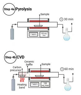 图2.Schematic illustration of the thermal treatment of bio-based carbon aerogels.